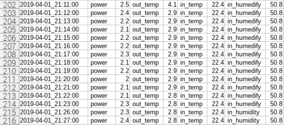 2019-04-01_21:00:00; power; 2.3; out_temp; 4.1; in_temp; 22.4; in_hemidify; 50.8