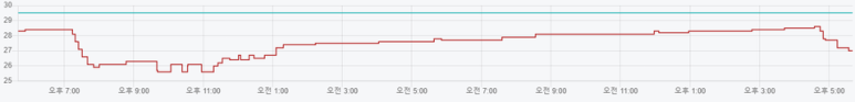 에어컨 설정온도는 26~28도 까지 왔다갔다 하지만, 실내 온도는 27도(26.7~27.3도) 를 유지하게 자동화 시켜놨습니다.