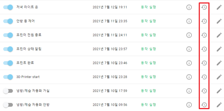 원하는 자동화 우측에 있는 시계모양 아이콘을 클릭해 주세요.