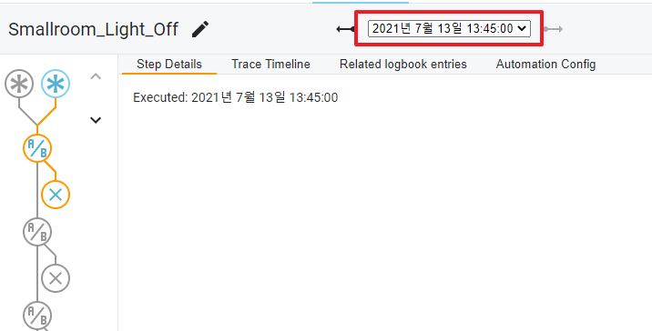 완료 되었다면, 오토메이션 디버깅(추적 표시하기) 로 가서 상태를 살펴봅시다.