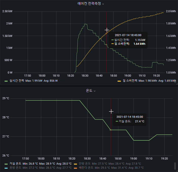 물론 위 데이터는 온도센서의 업데이트 인터벌이 약간 길기때문에 매우 정확한 데이터라고 하기는 어렵습니다.