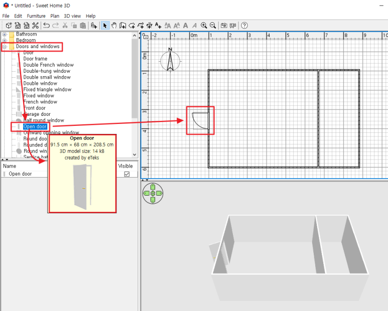 지금은 문과 창문을 배치할거니 doors and windows 항목에 가서 살펴봅니다.