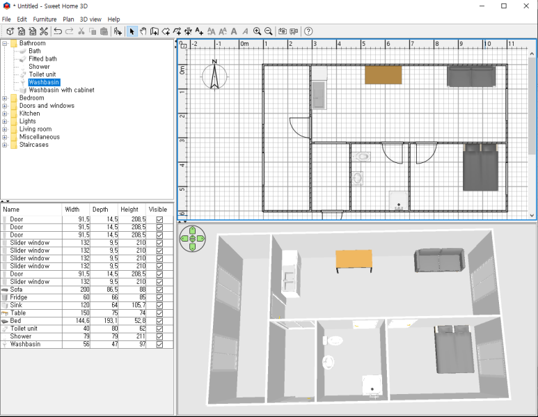 sweet home 3d의 모든건, 수정이 가능합니다.