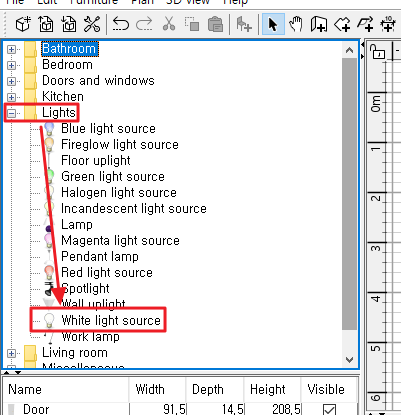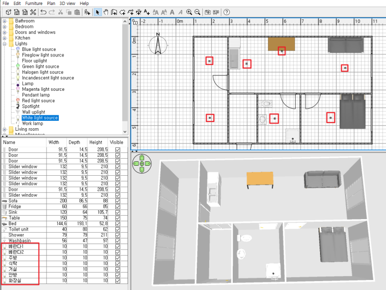집을 다 그렸다면 이제 조명을 설치할 차례 입니다.
