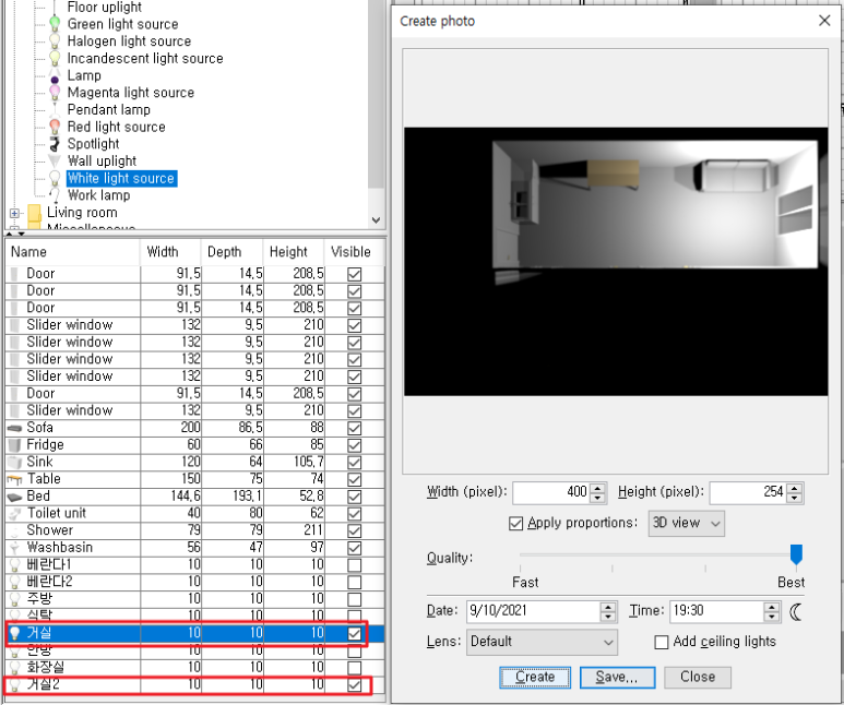 전부 끈 다음, 다시 다음 구역을 켜고, Create -> Save.. 이걸 모든 라이트(구역) 개수만큼 진행해 주세요.