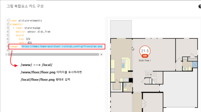 image항목이 있는데, 아마 기본값으로 HA에서 제공하는 데모페이지의 파일이 연결되어 있을겁니다.