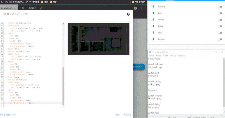 이 의미는, entity로 지정한(switch.balcony) 가 on 일때는 /local/floor/balcony1.png 를 표시하고,