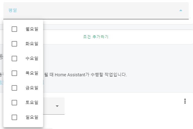 평일 항목은 아마 week가 오역된 것으로 보이며, 요일을 지정할 수 있습니다.