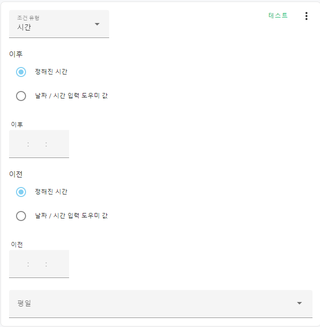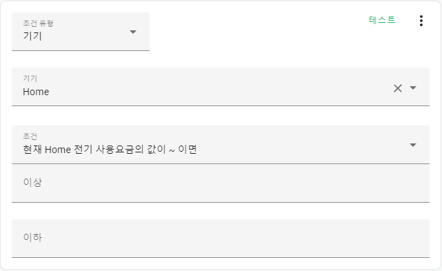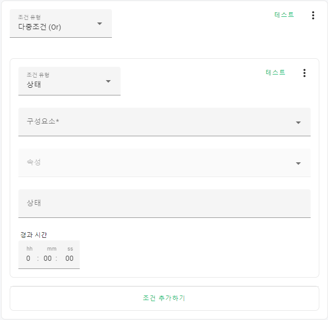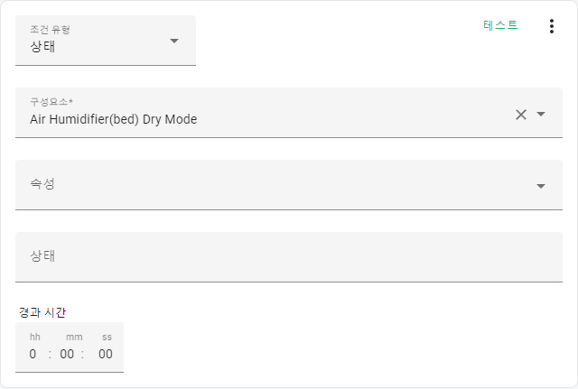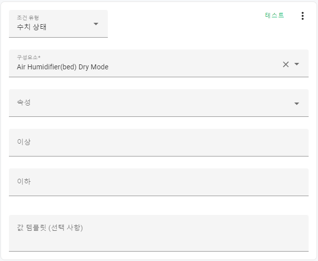 해당 조건은 켜짐/꺼짐 등의 상태일수도 있고, 수치일수도 있으며 지원 가능한 조건에 따라서