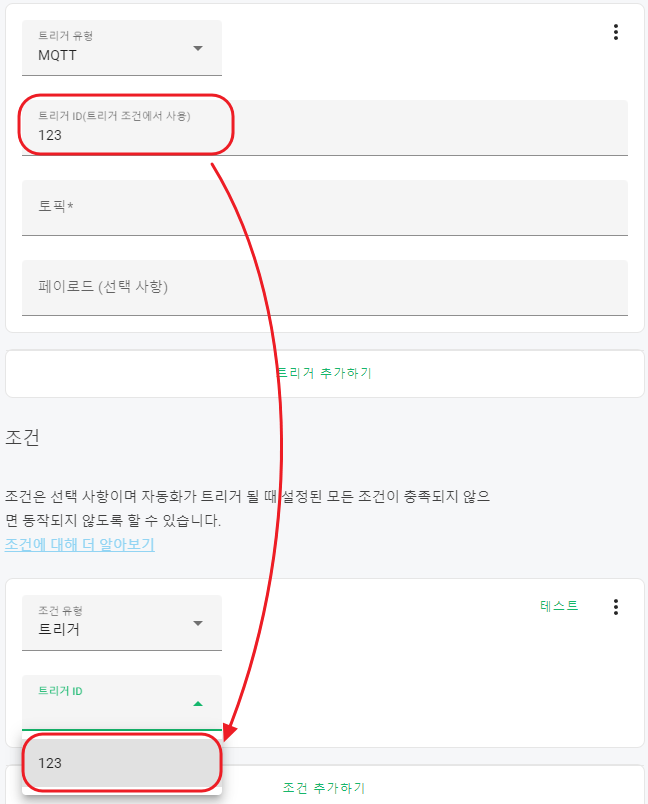 트리거가 여러개일때, 지정된 트리거ID가 자동화의 시작으로 동작할때만 조건을 만족합니다.