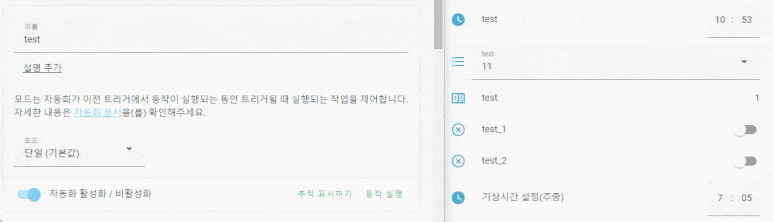input_boolean.test_1 의 값이 on 일때를 조건으로 넣어봤습니다.