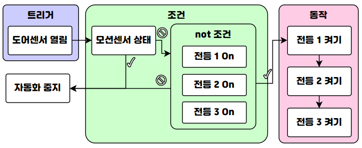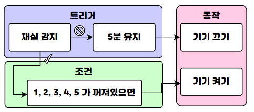 트리거 - 동작 - 기기 켜기 -> 기기 켜기 트리거 - 동작...