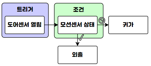 모션 감지 + 도어센서 열림 = 외출하려고 문을 열때