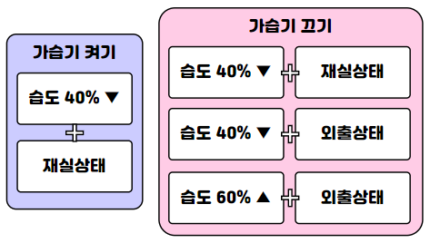 재실상태 + 습도 40%(혹은 50% 등) 이하인 경우 가습기를 켜고
