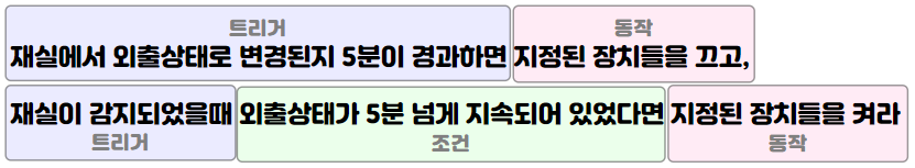 여기서 좀 더 나아가면, 외출에서 재실로 변경시 -> 지정된 기기를 켜라