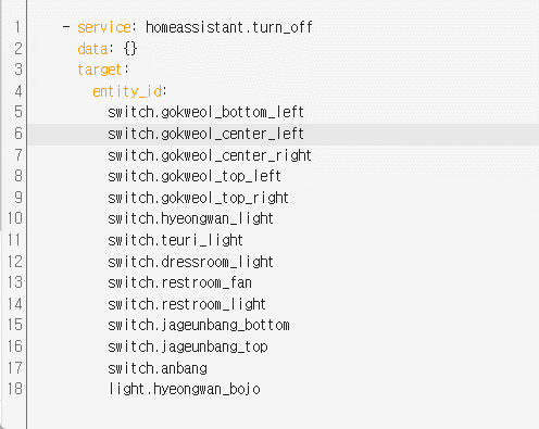 이것들은 HA의 YAML 에디터 형태로 되어있는곳이라면 어디든지 쓸 수 있습니다.