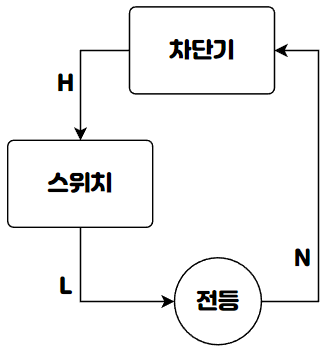 2선식 - 1구짜리 스위치로 전등을 제어할때, 연결된 선이 최소 2개(H / L)만 있으면 동작함
