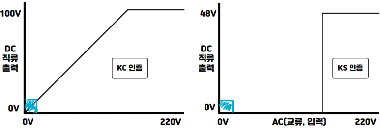 KS인증 제품의 경우, 거의 대부분 출력측 전압이 50V 미만입니다. 그리고 변환 효율도 높은편 이지요.
