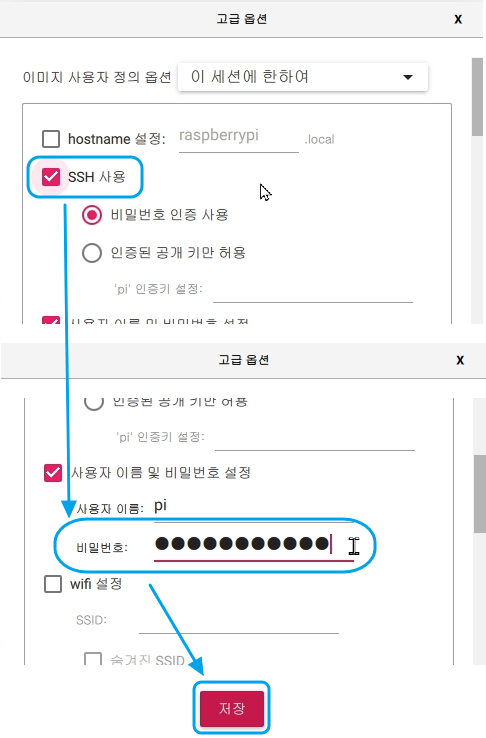 이미저 사용으로 가장 많이 달라진 부분입니다. 이제 SSH 파일을 만들어줄 필요가 없어요.