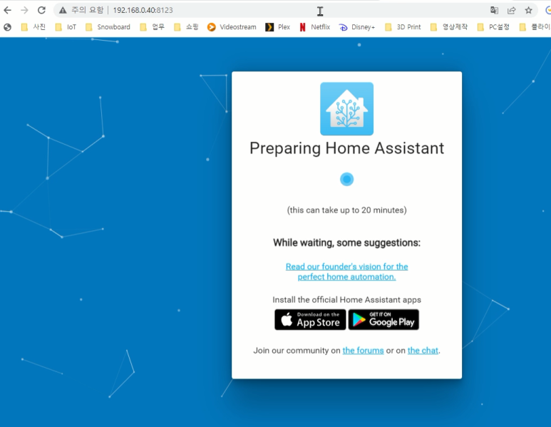 그런 다음, HA core에서 HA구동에 필요한 파일들을 다운받고 정리하고 나서야 HA가 구동됩니다.