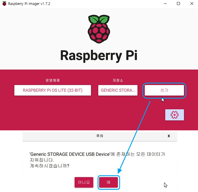 설치가 완료되면 라즈베리파이 이미저가 자동으로 실행될겁니다.