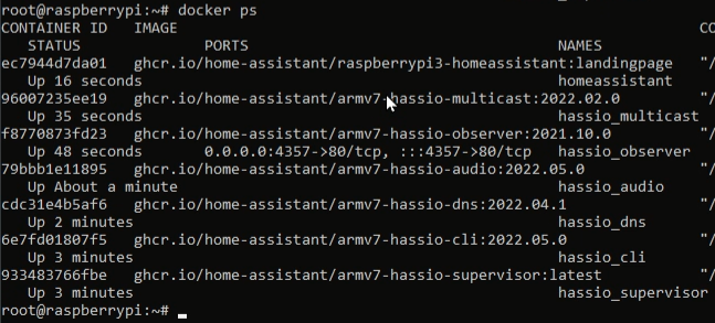 hassio_supervisor 부터 cli, dns, audio, observer, multicast 까지 설치되고 나서야