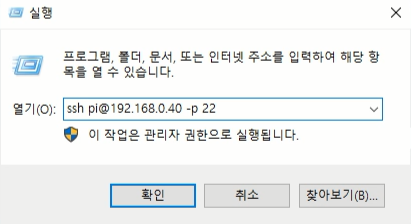 전 기본계정인 pi를 쓰고, IP는 192.168.0.40 이므로