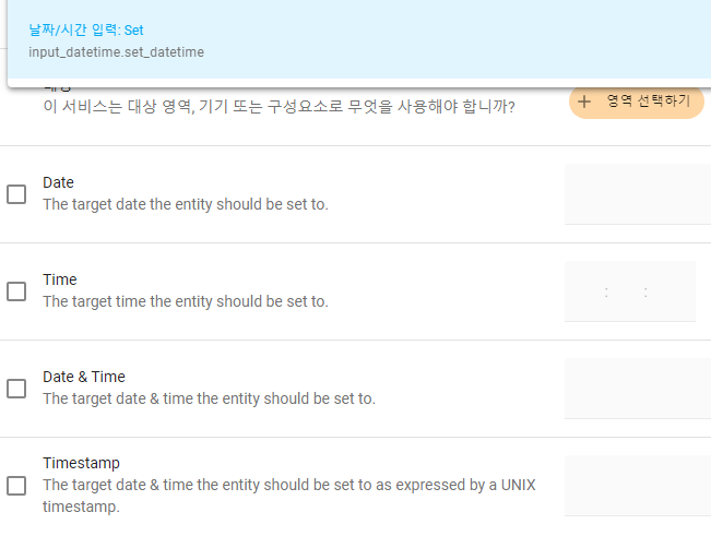 input_datetime.set_datetime 서비스를 활용해서 필요한 내용을 지정할 수 있습니다.