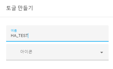 토글도 매우 단순하게 이름과 아이콘 설정만 가능합니다.