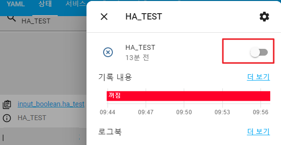 다만 이건 스위치가 아니고 input_boolean이라는 domain 을 가지고 있기 때문에