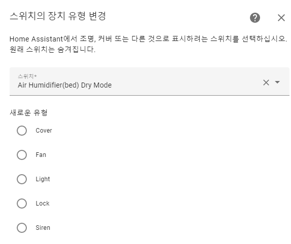 이 상태로 구글홈 등에 연동되면, 해당 장치는 스위치가 되어서 따로 설정을 해줘야 하죠.