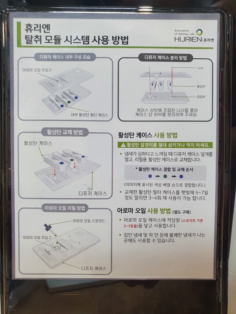 하단에 탈취모듈용 필터가 위치해 있습니다.