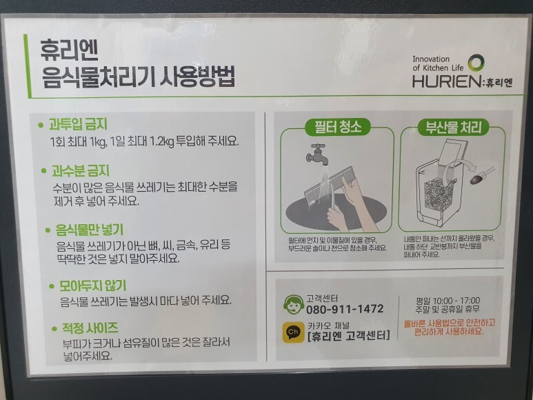 음쓰 처리기 사용을 위해 가장 기본적인 내용이 적혀있네요.