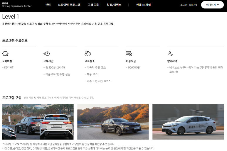 금액은 9만원으로 BMW의 절반정도이며, 교육시간은 2시간 이지만 1인 1차량 배정입니다.