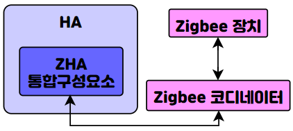 바로 ZHA 통합구성요소<->Zigbee 코디네이터 와 통신합니다.