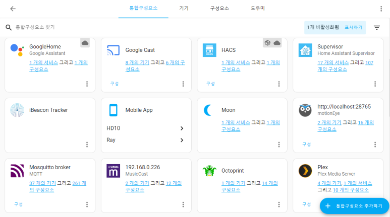 바로 통합구성요소는 HA에 설치되는 것 이기 때문입니다.