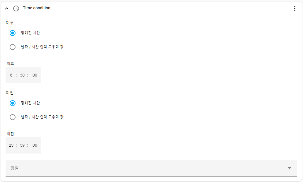 트리거 값을 만족해서 자동화가 시작되고, 조건을 '모두' 만족했다면 동작 단계로 넘어갑니다.
