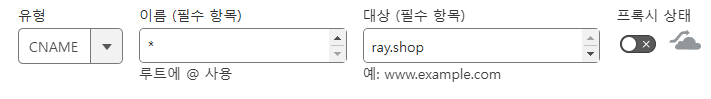그러면 *.ray.shop = ray.shop 과 같은 IP를 바라보게 됩니다.