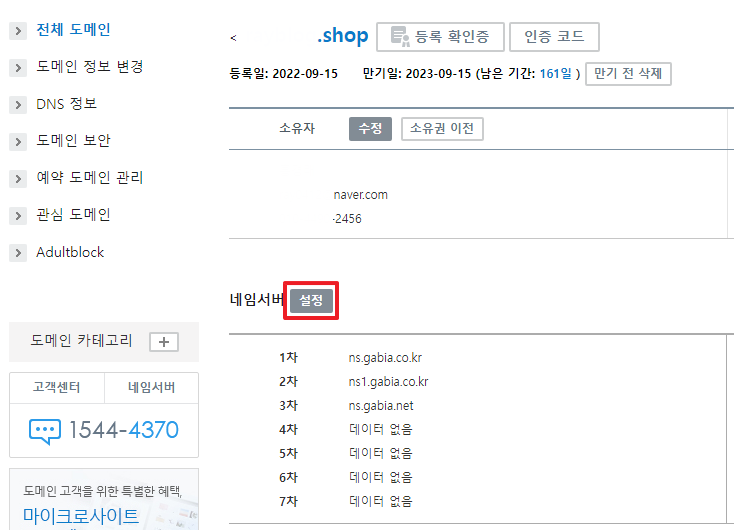 저는 가비아를 기준으로 작성했으며, 다른 도메인 제공 업체도 비슷한 메뉴들이 있으니 어렵지 않을겁니다.