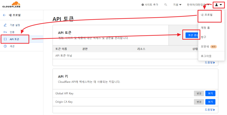 DDNS용 IP 자동갱신, DNS챌린지를 사용하려면 토큰을 발급받아야 합니다.