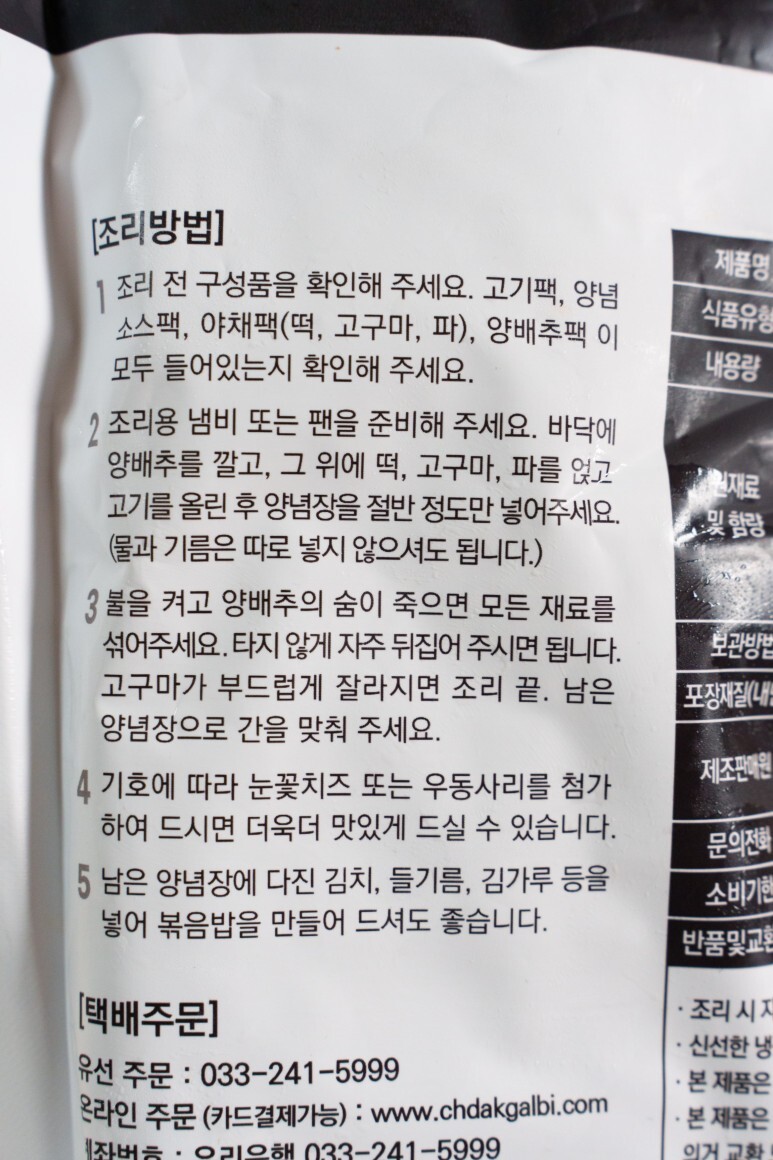 닭갈비는 양념에 재워둔 상태로 포장되어 있습니다.