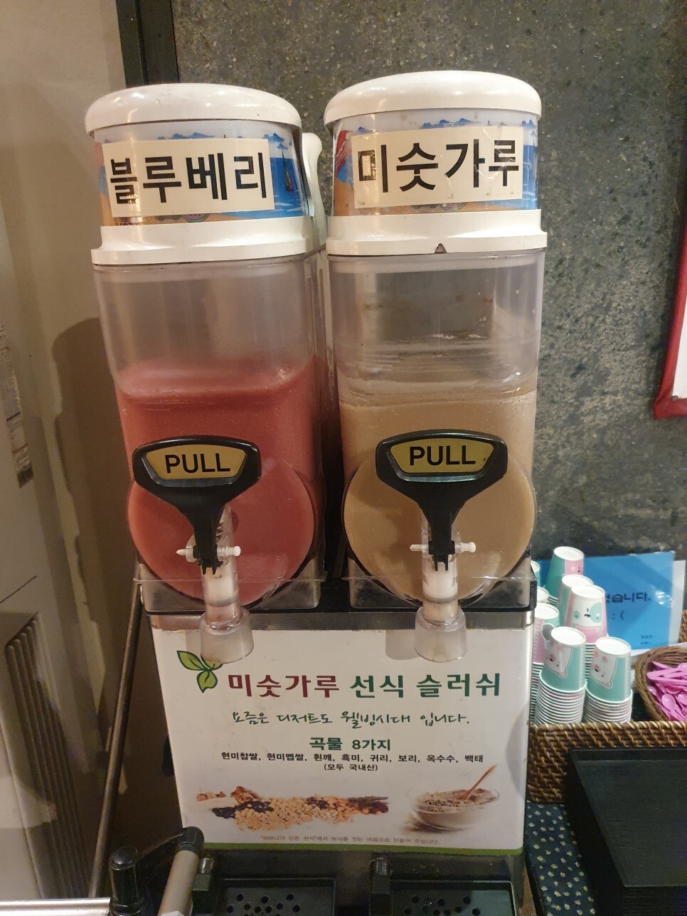 음..미숫가루를 슬러시로 먹는 느낌. 슬러시 이기 때문에 약간 밍밍함..