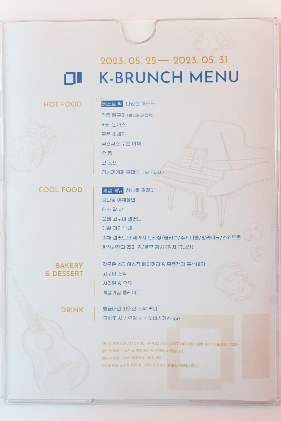 09:00 ~ 23:00(2, 3층 22:00 마감 / 브런치는 09:30 ~ 14:00)