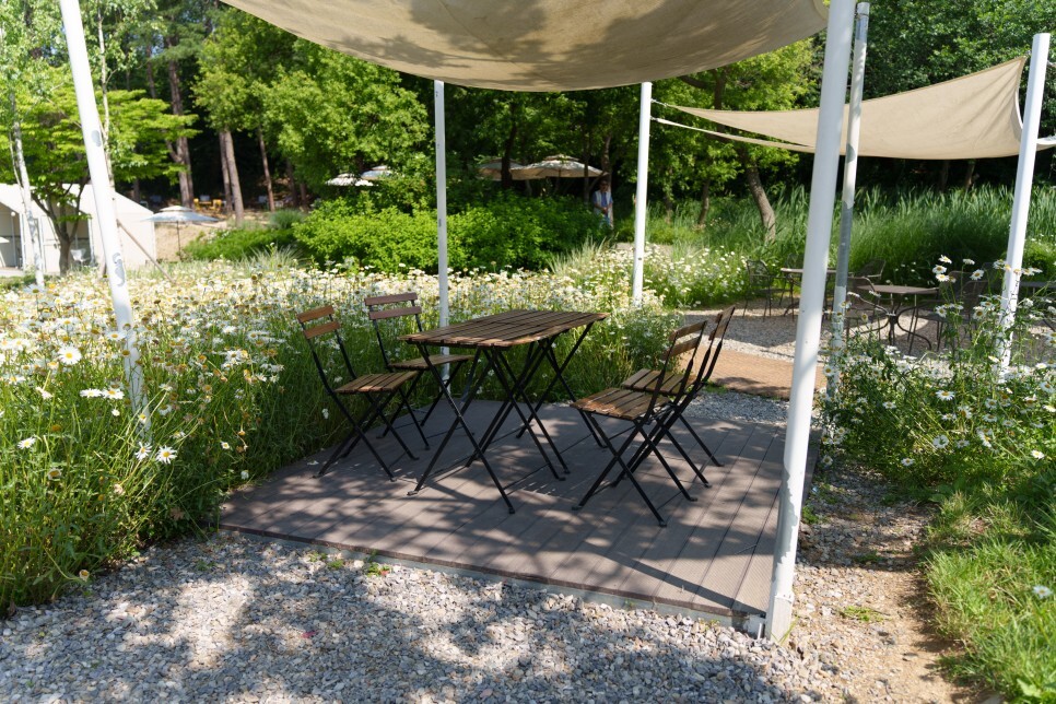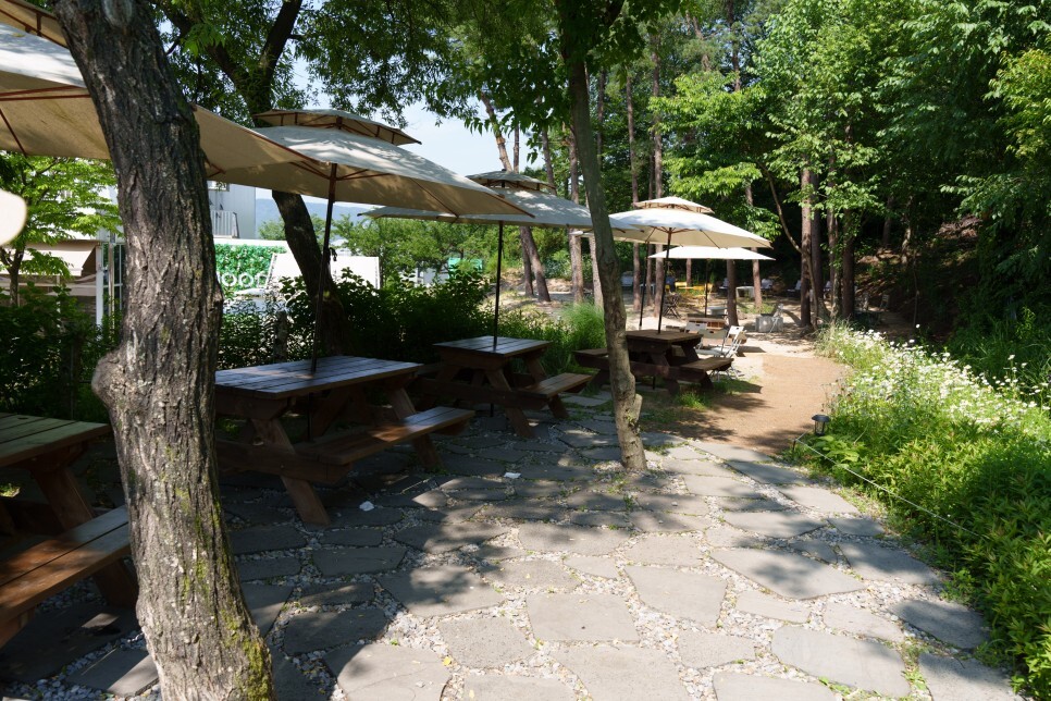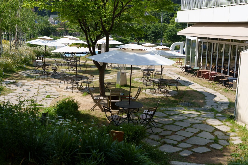 날이 덥지 않을때, 꽃이 잘 피었을때 야외테이블을 잡는것도 상당히 좋을것 같아요.