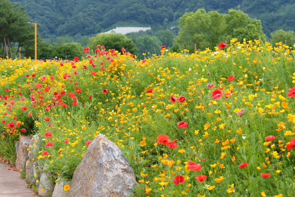 캘리포니아 양귀비는 약간 높게 조성되어 있어서 꽃벽 느낌으로 사진찍기가 괜찮았어요.