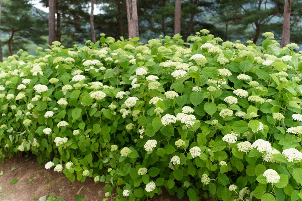 언덕 위쪽은 수국이 자라고 있습니다. 진짜 수국이 수북수북 해요.