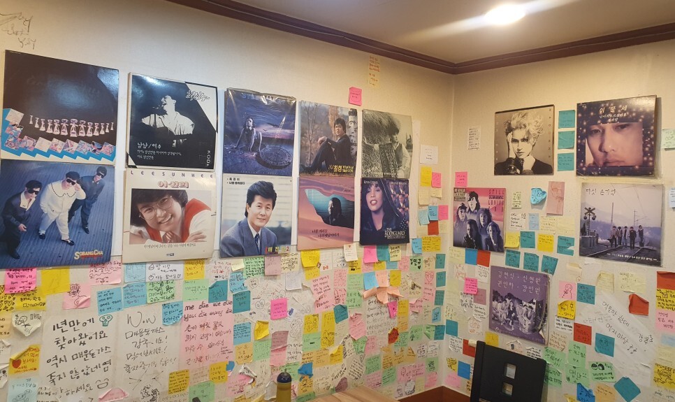 벽면이 온통 포스트잇과 메모가 가득합니다.