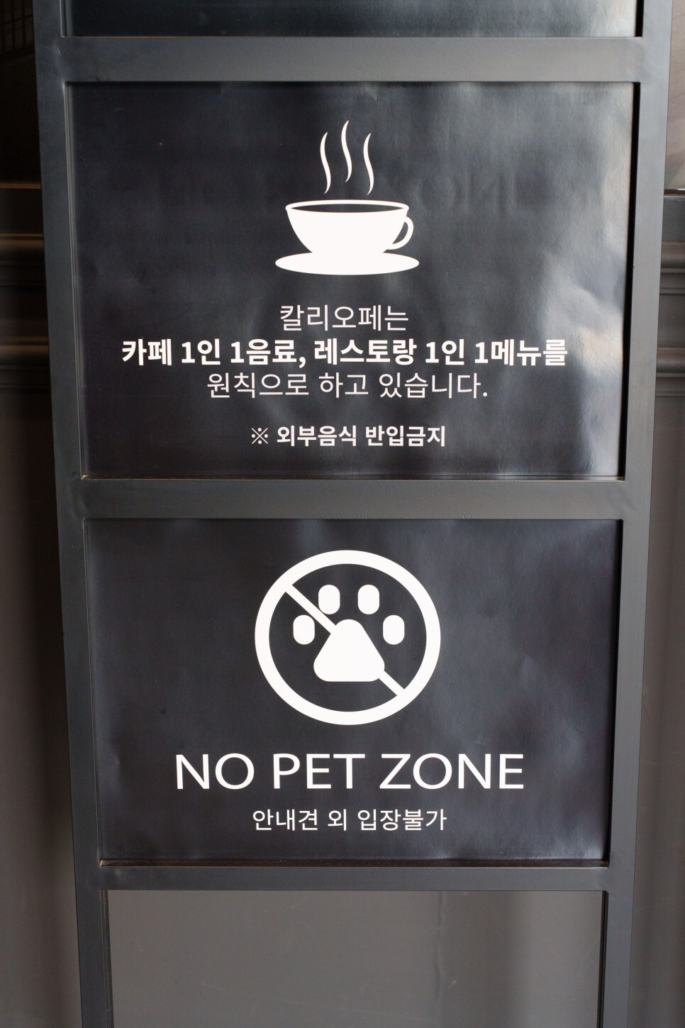반려동물 입장 불가(안내견은 가능) / 1인 1 음료 or 1인 1메뉴(레스토랑 이용시) 원칙입니다.