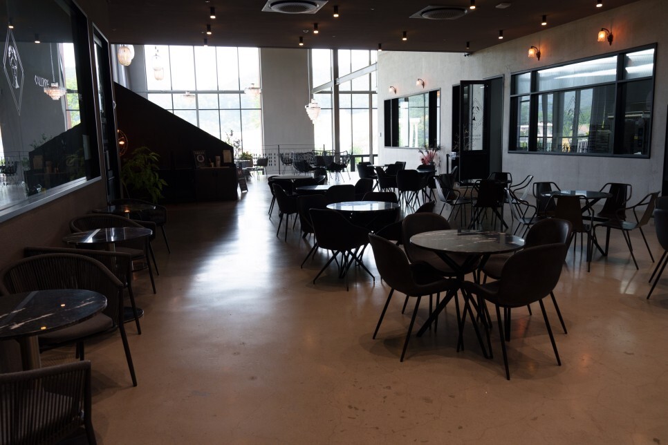 2층은 노키즈존 으로 운영되며, 역시 다양한 형태의 테이블과 의자가 있습니다.