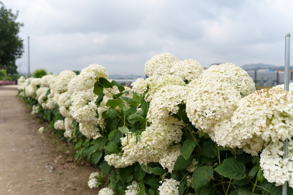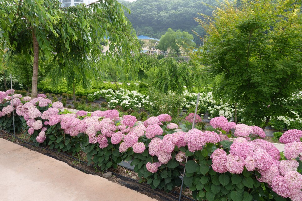 흰색 수국과 핑크색 수국이 다 지고 나면 그때야 만개할듯 해요.